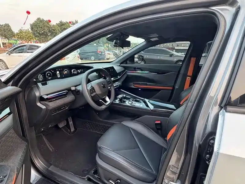 原厂运动座椅已经够支撑了,但我加了橙色饰条,跟轮毂红边呼应,细节拉满。老婆说现在坐进去,感觉像进了赛车座舱。
