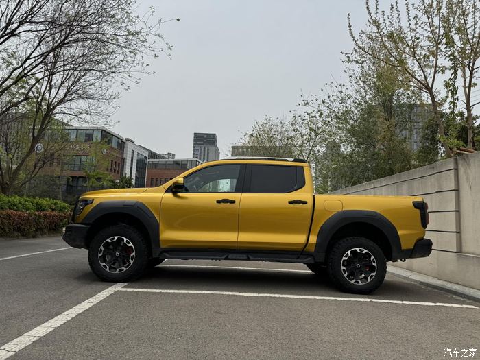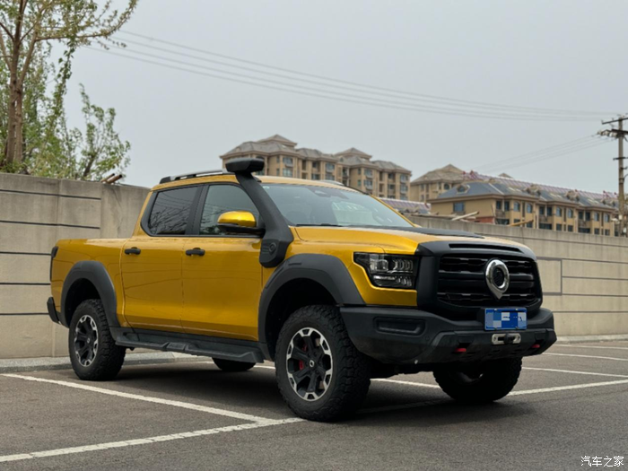 这一开就是快一年,只能说皮卡的属性谁用谁上头啊。我觉得和照片相比,实车更亮眼,黄色的车漆很有个性,前脸是黑化的,跟车漆的颜色有很大的反差。连引擎盖前的双涉水喉都是原厂自带的,看着就特别硬核。