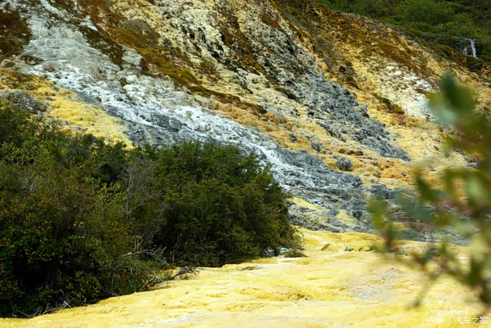 这陡壁是要登上第六阶地必经的道路,也展示了钙化滩五彩瀑布的如下真相。