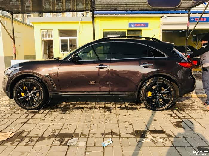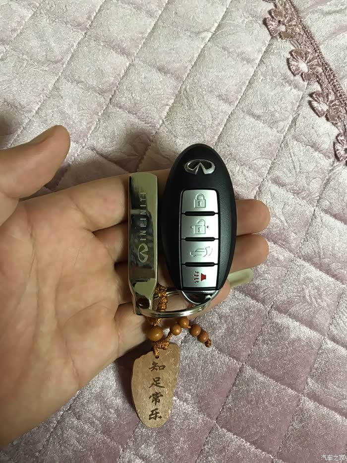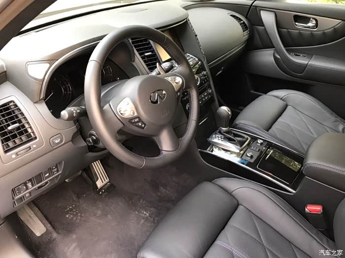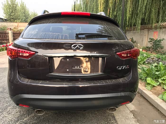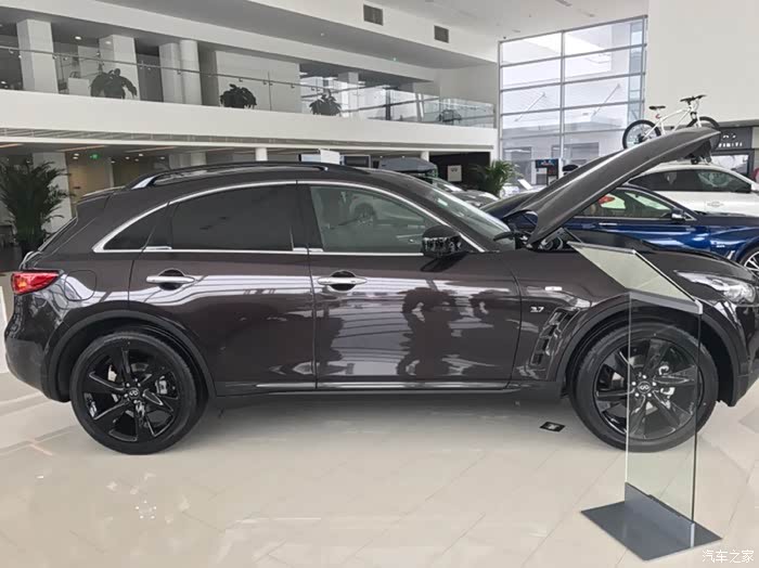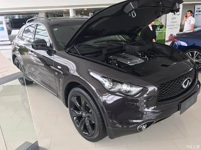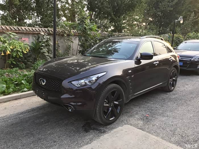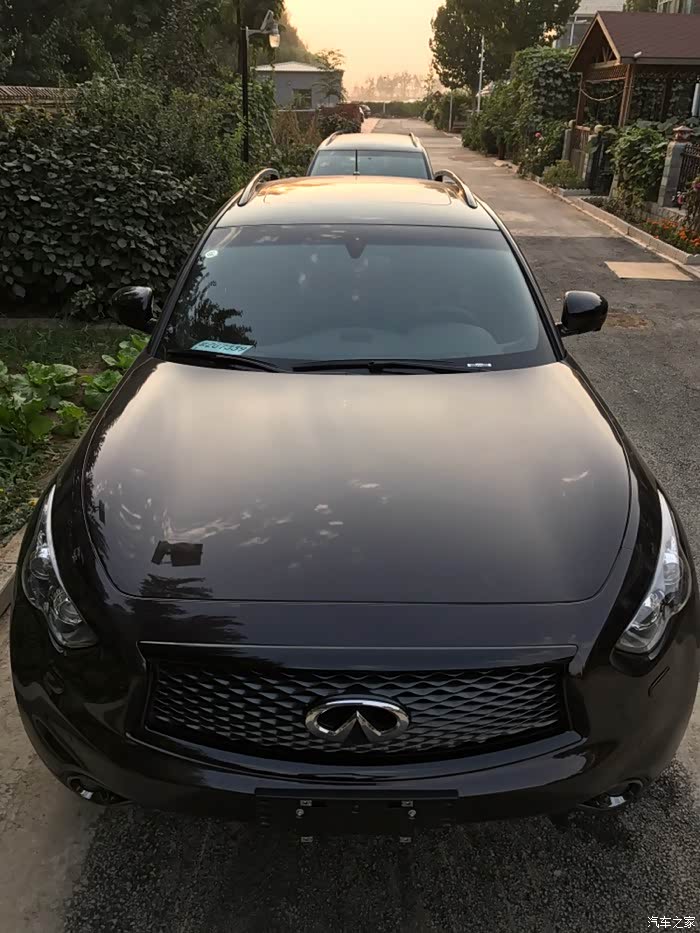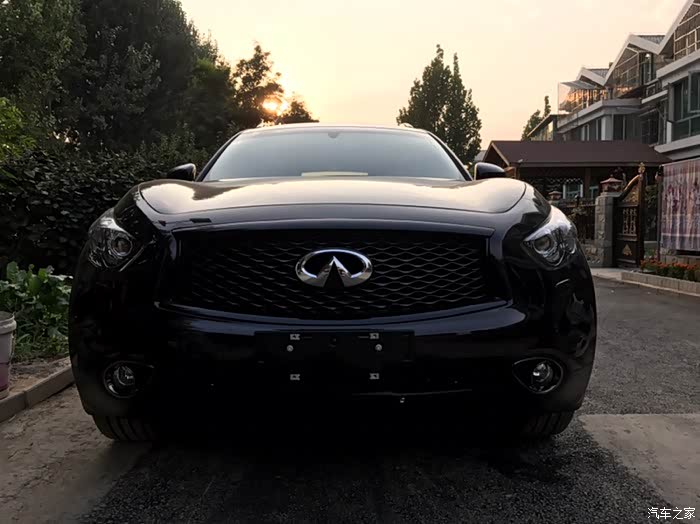 话说提大鲨鱼回家实属意外,最初关注的多款车型根本就没有大鲨鱼,本想买个中小型SUV嘿嘿嘿嘿!一直喜欢进口途观R-380白色那款,但是天朝四个进口大众都说没车,好不容易有一辆车R380还是棕色的而且还让老子加价买!快滚吧……转战同价位的BBA看看GLC和X3及Q5……周末没事带着家人去看车……因为开发区4S店比较集中基本上都挨着……从东到西看了一遍BBA里的吊丝销售居然都没搭理老子……靠的……转身进了旁边的英菲店,销售态度立马让你体验啥是顾客是上帝,非常亲切的走过来打招呼和介绍车辆,进英菲看同价位的车其实是QX50,进店第一辆车就是一辆白色的我很喜欢各方面都看了一个遍,回身征求家人意见结果家里老爷子嫌50太小了,媳妇也这么觉得,好吧,那走吧,结果老爷子回头一下看到70了,说买这个吧,这个看着大一点,我当时一愣,心里想老爹啊您也不问问价钱说买就买哦……低调的给了销售小妹一个眼神……立马心领神会轻轻的告诉我价格……我一听还可以呀!咬咬牙也OK呀!于是开始各种看车问配置啥的,由于之前从来没关注过70所以基本上啥都不了解,只知道VQ37这3.7的发动机比较牛逼。于是开始纠结了,但是家人都等的不耐烦了,各种催我!于是一拍脑门就是它啦!通过与销售小妹沟通这台展车就是新车于是偷偷的打开车门看了一下“身份证”17年6月刚在日本“出生”滴!才俩个多月!OK啦!交钱!订车!短短几十分钟就定下了我和大鲨鱼的姻缘!也是够速度的啦!