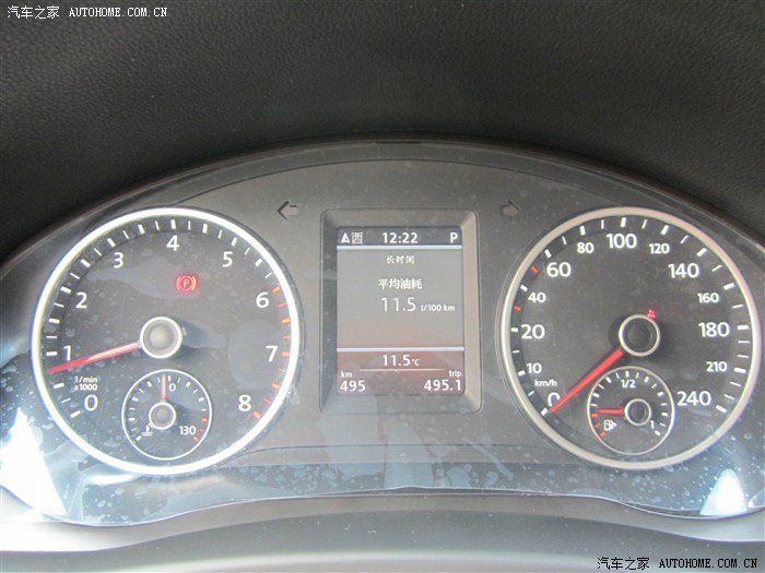 2.仪表盘:22号提的车,到今天两周了。加了95号,500元加满。这是平均油耗。