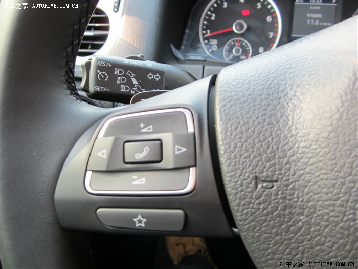 3. 方向盘区全景。大众的logo,多功能方向盘。很好用,很喜欢,本人一直忙啊,