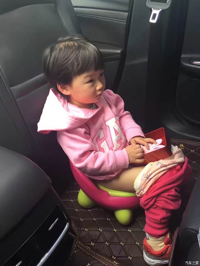 我小宝在车里方便!!!在高速公路上行驶中,幸好带了小马桶,小家伙一脸的不愿意,那也没办法!