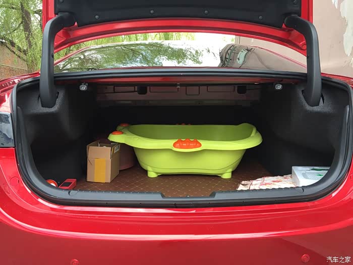我小宝的洗澡盆。得益于阿特兹后备箱规整,两侧并没有凸出异形,而且进深大。放一些家用的行李之类的还是绰绰有余。