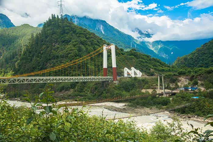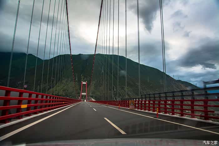 当时第一眼看到这座桥,就觉得好漂亮!主体红色,又很符合泸定,大渡河这个红色名城(飞夺泸定桥这篇课文大家应该是绝对不会忘记的)。晚上刷微博正好又看到关于这座桥梁的介绍:雅康高速泸定大渡河兴康特大桥,被誉为“川藏第一桥”,全桥长1411米,主跨1100米,造价超过10亿元。世界第一场隧道式锚碇、雅安岸隧道式锚碇长159米,四川省内首次利用无人机牵引先导索过江,国内首次在高海拔峡谷地区。复杂强劲风场条件下,采用缆索吊装系统架设千米级刚桁梁等等,最近还在6月11日,于美国马里兰州召开的第36届国际桥梁大会上,荣获IBC“古斯塔夫·林登少”金奖,该奖有着桥梁界“诺贝尔奖”之称。