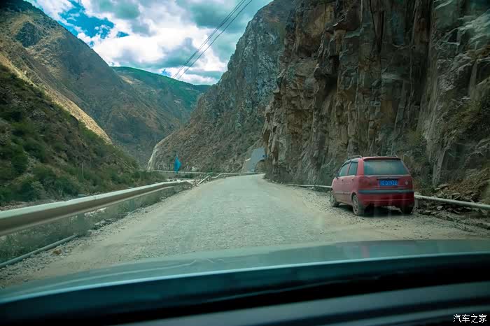 金沙江至芒康段,网友们戏言:修了一百年的路,一百年都没有修好!不过施工确实有难度,不过这路况实在是超乎想象的糟糕,50公里我在里面折腾了三个小时才出来。最大的收获就是:7系宝马其实是越野车!在里面遇见两辆,底盘低,悬挂软,结果跑的不次于越野车,一脚油就不见踪影了!你们都是有钱人,舍得豁车啊!我用时这么久,很大的原因就是,小宝子已经八年了,还没有换过轮胎,最担心的就是扎胎或是爆胎,在哪儿换胎可真是要命,所以开的异常谨慎,大家走这里,除了确保轮胎之外,能加个发动机下护板的话,就可以开的更加激进与大胆一些了!绕是我如此小心,底盘也三四次传来咣当咣当的声音。