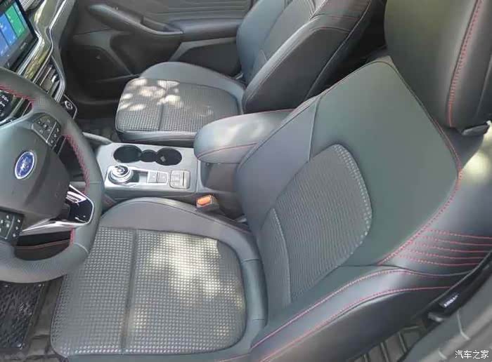 车内用料很棒,软材质加红色缝线,运动感非常强