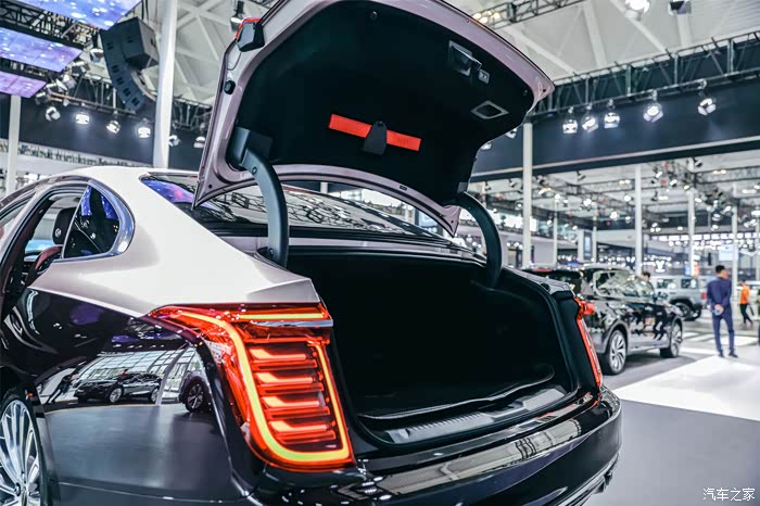最吸引我目光的肯定还是主展台的C位明星:3.0T 智联旗领四座版 红旗H9。