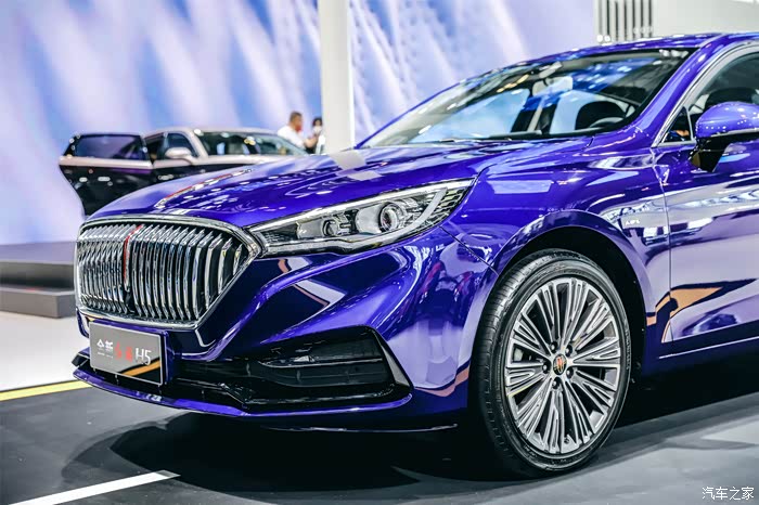 面积巨大的直瀑式中网,配合发动机舱盖中间镶嵌的两个标志性“红旗”抽象LOGO相当醒目。
