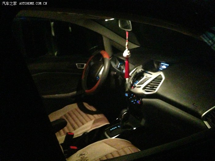 晚上在车里,我还是很喜欢中控的颜色的,实际比照片稍微绿一些,科技感很强