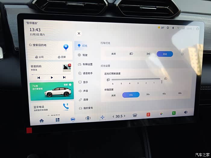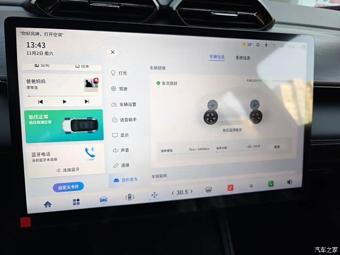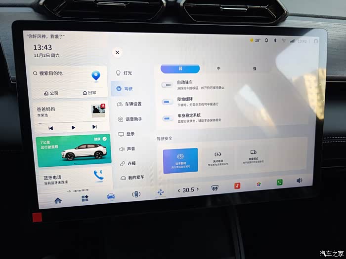 点开每一项的功能以后看到可选择的功能分的比较明确和多一些的,例如灯光的设置、车辆信息的查看以及辅助驾驶需要设置的一些功能,操作起来也很顺滑没有感觉到卡顿的现象。其实风神L7纯电版的车机界面和插混版的几乎没有太大区别,唯一区别的就是续航总值和能量回收功能。