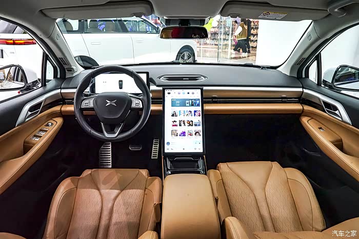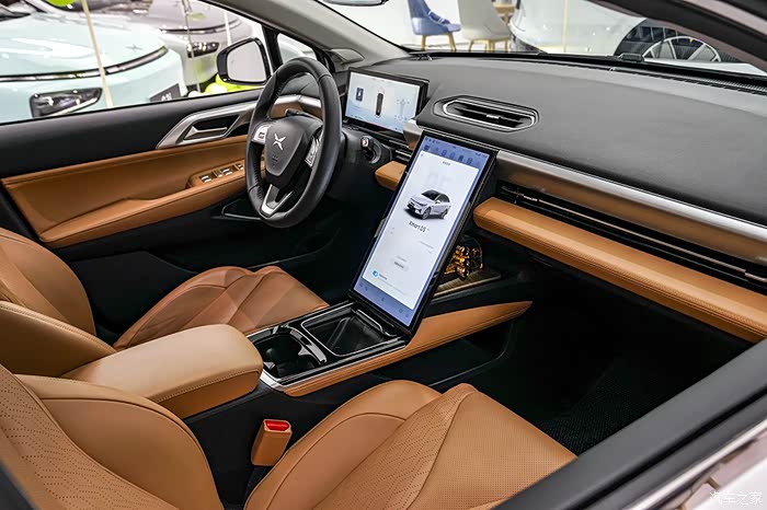 来到车内,小鹏P5的内饰给人颇具简约的视觉效果,显得特别明快、清爽;采用环抱式座舱设计,给人满满的安全感。