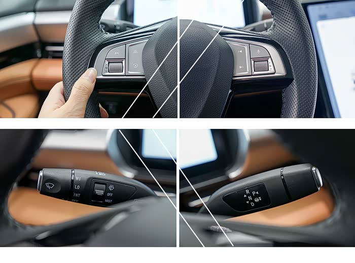 方向盘左侧为液晶仪表调节按键,右侧则是多媒体控制按键,便于上手,行车时可实现盲操;小鹏P5同样采用的是怀挡形式换挡,这也是电动汽车一贯的设计风格,另外怀挡机构连续往下拉两下就能使车辆进入高等级的驾驶辅助状态,让旅途变得更加轻松愉悦。
