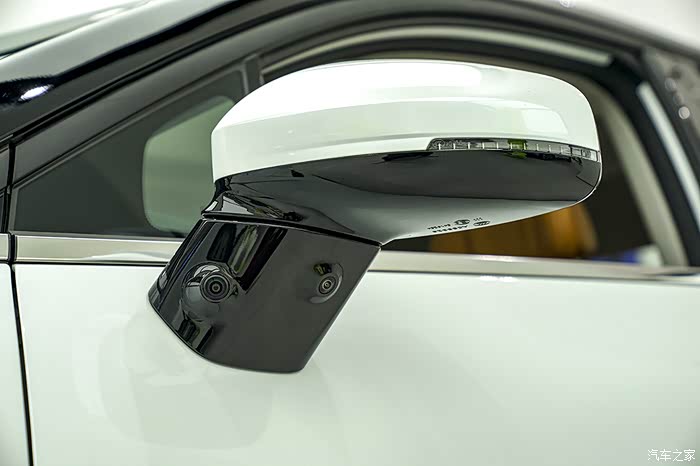 外后视镜上半部分与车身同色设计,下半部分连带“脖颈”运用高亮黑元素,与“黑化”的车顶形成统一格调,突显档次感,“脖颈”处一前一后两个高清摄像头,表明此车搭载的智能驾驶系统更先进......