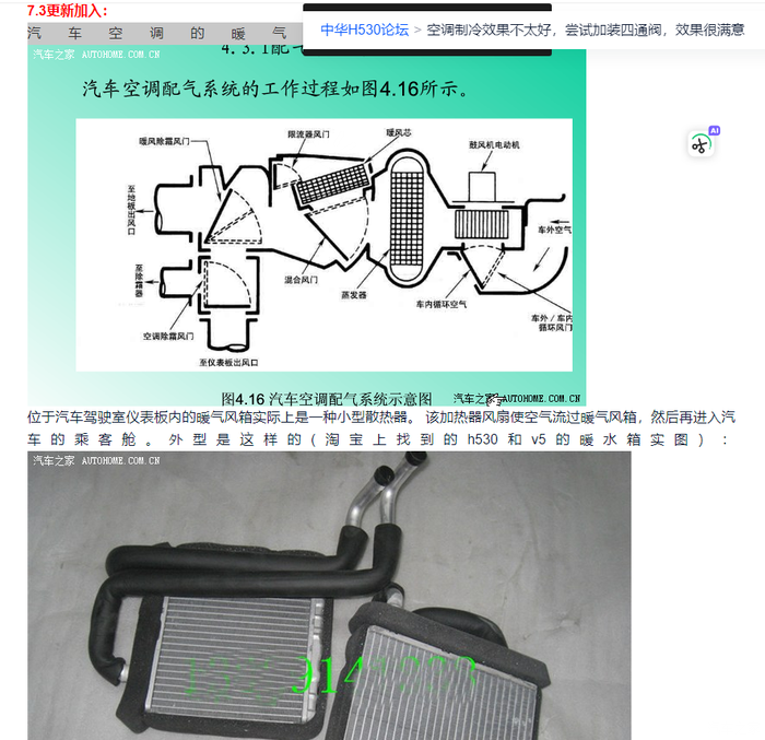 汽车空调的暖气、通风净化系统原理图可以参考下面帖子: