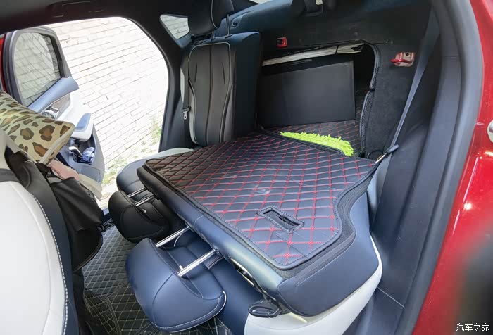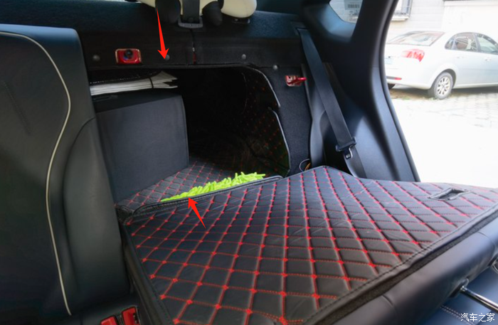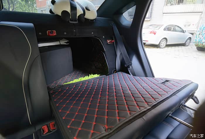 拆下后排坐垫后,发现能将后排靠背放到更平的状态。但是,放平后的靠背与后备箱还是有高度差的,形成了一个台阶。看来,如果想在此趟平睡觉,还要弄个薄箱子,找平这个高度差。