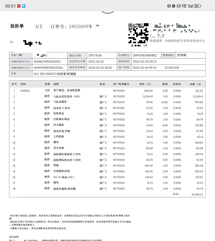 2024年3月突然在高速亮起了黄灯,同时发动机伴有抖动。事发紧急。东北下着大雪。直接下了高速。然后送到4S店。
