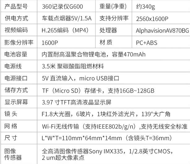 这款360记录仪g600,功能方面特别的丰富,拥有大广角,大光圈、2K视频,也夜市功能,搭载ADAS高级驾驶辅助系统,除了可以及时告知前车启动信息外,还能智能识别红绿灯,绿灯亮及时提醒,识别限速标示并实时提醒,免超速危险。内置重力感应器,当感应到剧烈震动或发生碰撞时,自动开启紧急录制模式,自动保存证据不被覆盖。爱车熄火后记录仪会自动开启停车监控模式,搭配360专用降压线可实现24小时监控,基于缩时录影功能完整记录24小时,若仍未启动车辆,则自动关闭缩时录影,进入震动感应模式,当车体感到震动记录仪将自动开启录像功能,录制1分钟视频( 当然这个功能需要配套360专用降压线使用 )。