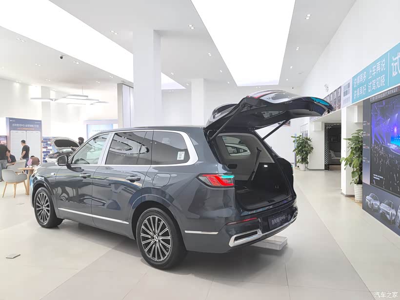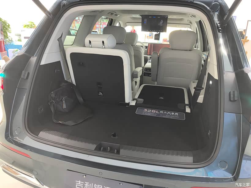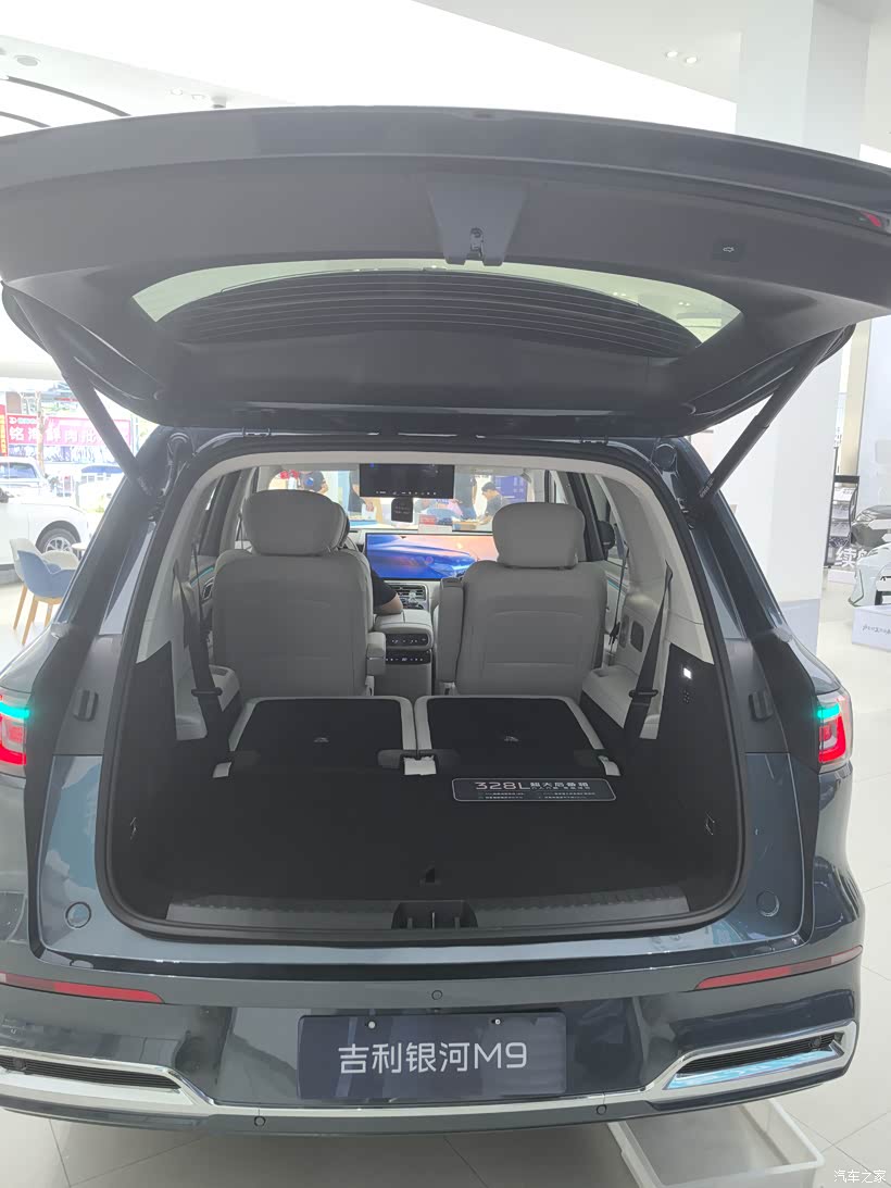 ⑤该车后备箱空间跟我之前试驾理想i8的空间接近,说是有328L的超大后备箱,之前看过有博主测评领克900的后备箱空间,可以放6个44L的行李箱,这个银河M9的后备箱空间比领克900大不少,那么正常它也是可以放至少6个44L的行李箱的。而后备箱的下沉空间深度正常可以容纳类似医疗箱这样高度的物品。综合看来,其后备箱的空间还是非常大的。另外,我还需要说它另外一个比较实用的地方,那就是它隐藏的储物盖与后备箱车门边缘是接近持平的,也就是说如果临时累了,特别是露营在外,我们还是可以临时坐在后备箱位置的,这点对于野外露营有一定的实用性。