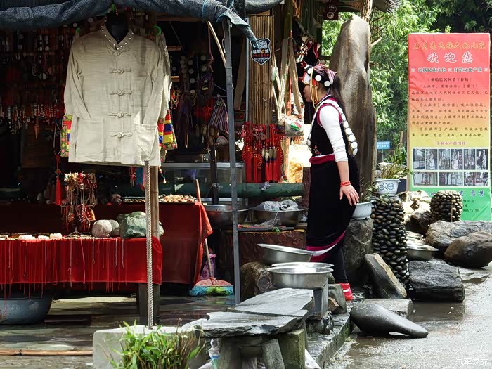 售货棚旁的傈僳族姑娘