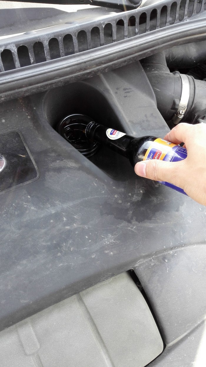 公里数多了,正好手上有瓶以前买的发动机内部清洗剂,不管有用没用,用了再说。