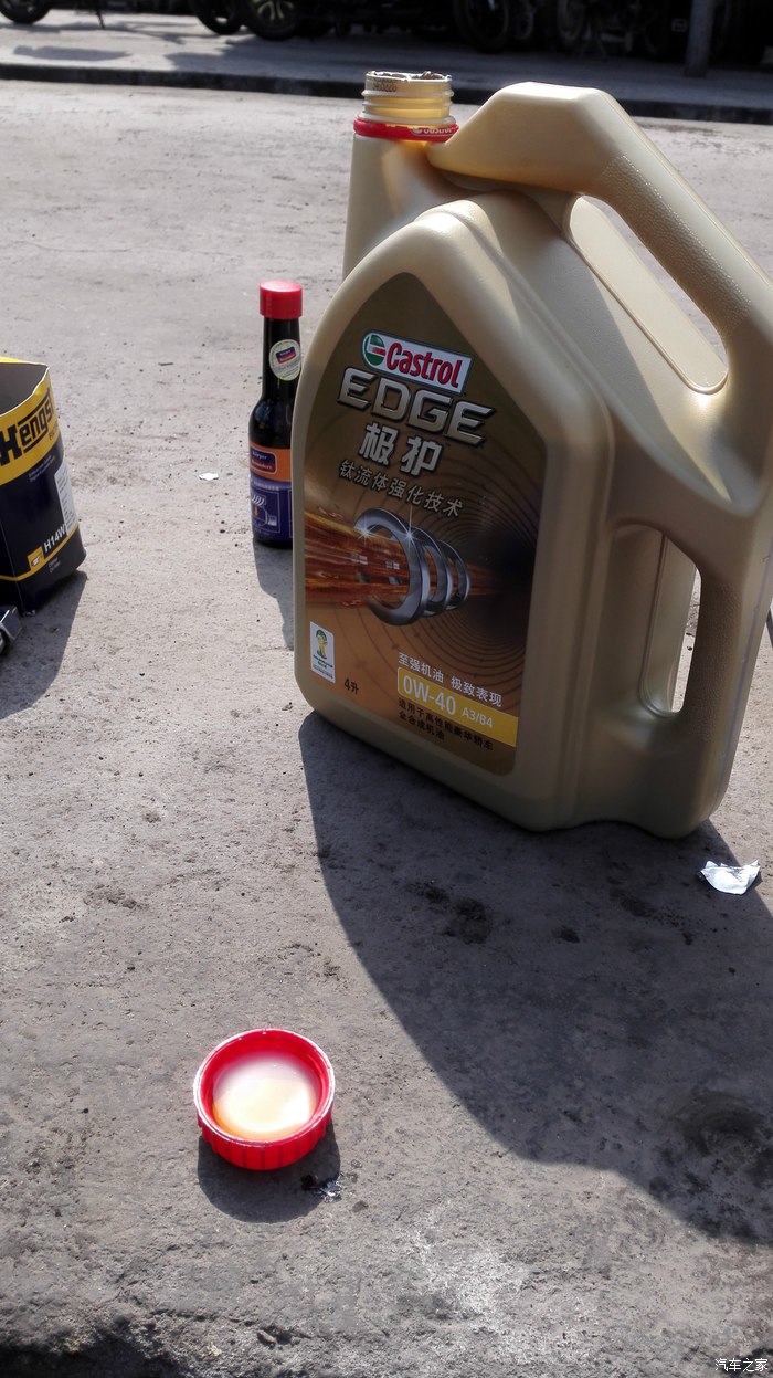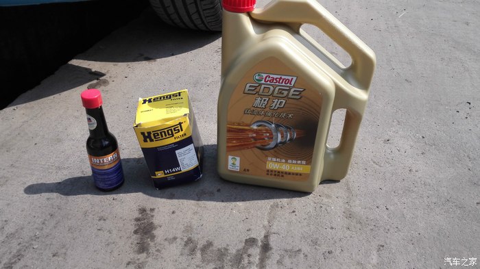 本次保养物品,左边是发动机内部清洗剂,中间是亨斯特机滤,机滤好像是13块钱,机油当然用全合成的极护,4S给虫虫用的都是比极护要差的磁护半合成,价格还那么离谱,鄙视之