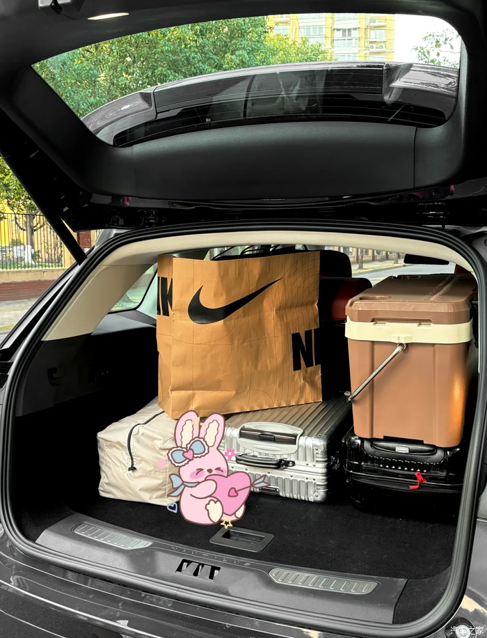空间方面必须拿出来单夸,除了前后排的乘坐空间宽敞之外,后备箱空间也是一如既往的能装。今早刚刚送老婆和婆婆去机场,随身的物品+行李箱+日常杂物,全部放下之后感觉还有很多富裕的空间。这以后带全家人出门,行李再也不用放后排了,全部往后备箱一堆就行,不过有点纳闷的是怎么没有原厂的遮物帘,这个是想让车主放大件方便一些吗?