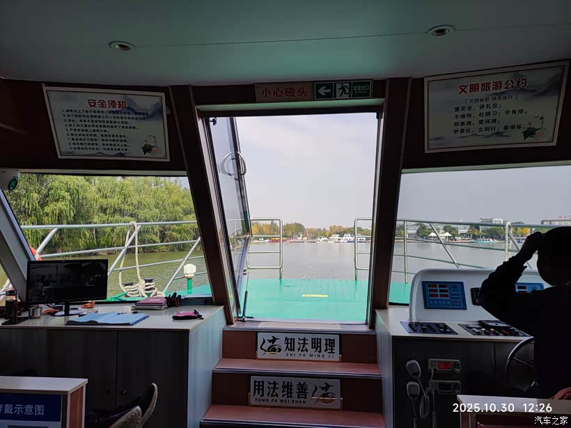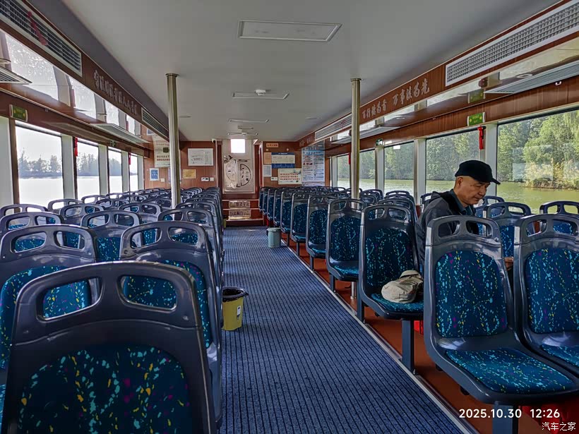 乘坐观光车返回码头,结束在微山岛的游览行程,随后乘船离岛返回游客中心。偌大的游艇,仅有我们三位乘客。