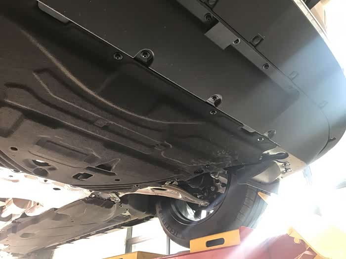特别提醒:原车的底盘护垫不要扔掉啊,要放在底盘装甲上一起安装上去,也就是原护垫位置在里面、装甲在外面(护垫用介刀沿着装甲的孔位开孔),这样安装的好处是减少异响的发生,同时装甲的硬度很好的保护了发动机底壳,安装这个底盘装甲建议车主要亲自监工,重点是装甲上螺丝的环节!希望对冒险家用户们有用。