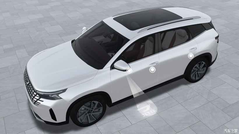 还有一处细节,由于我们是在白天前往店里体验,没有能够感受到捷达VS8的豪华浪漫感。它还有豪车同款的投影式迎宾灯,这在夜晚开关门会自动投影logo到地面,这就非常有仪式感。