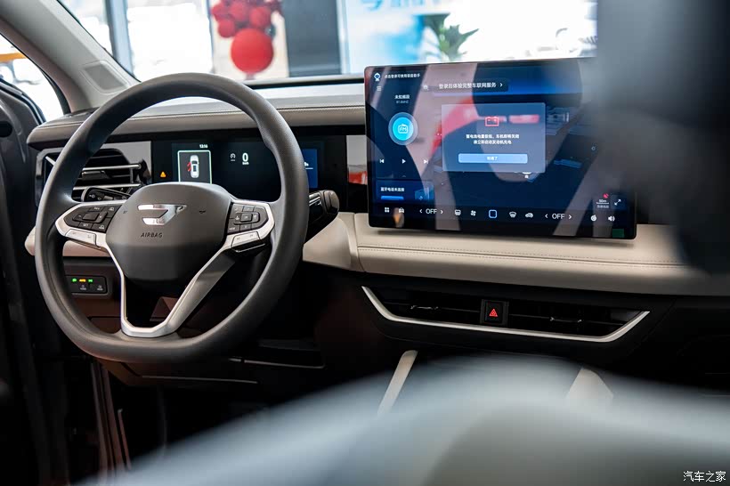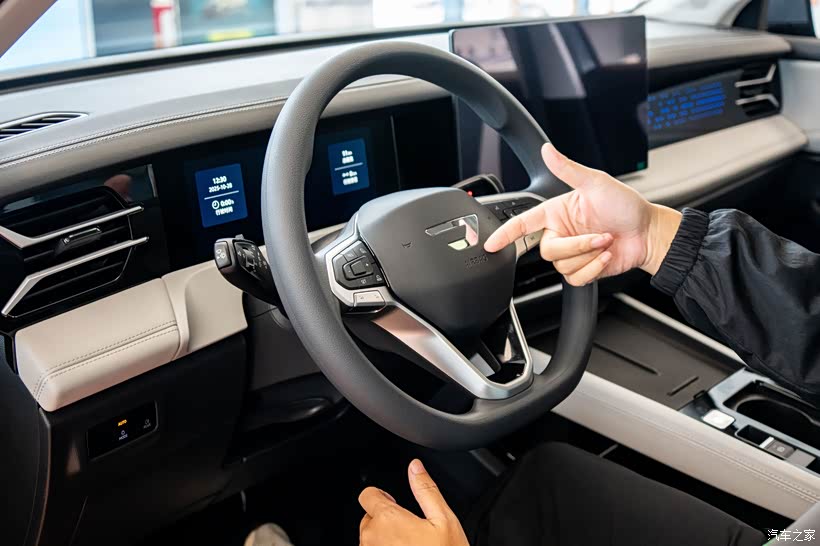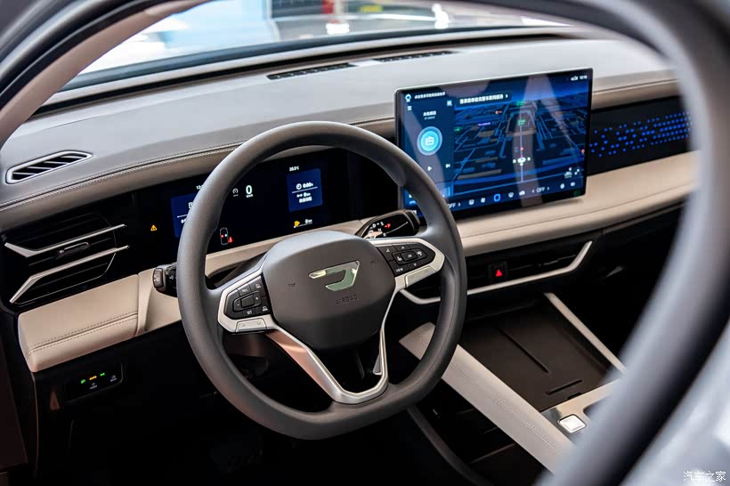 整个内饰的设计风格非常简约,10.25英寸的液晶仪表和14.6英寸的中控大屏,有一些新能源车的科技感,大部分的功能也都集中在车机系统中。