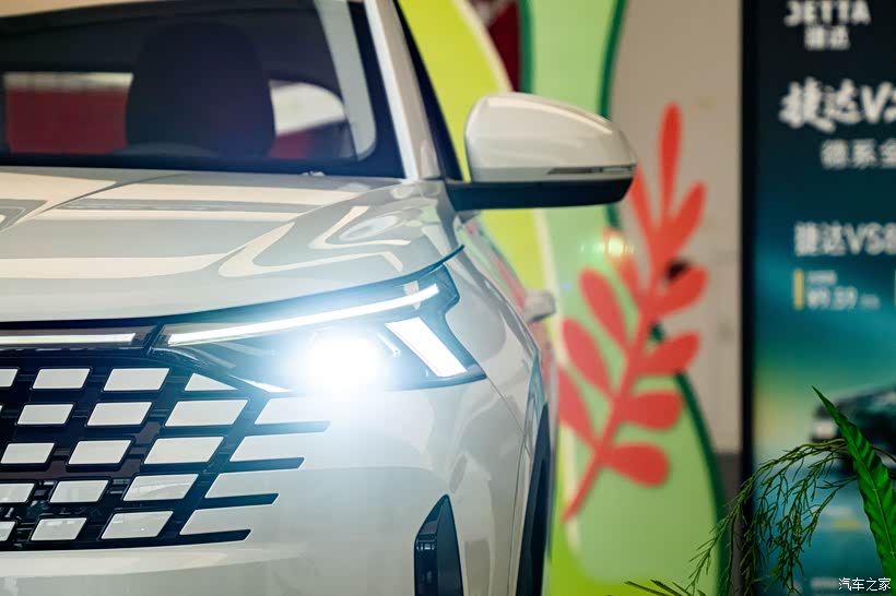 黄金比例的车身也让捷达VS8有了一些沉稳大气。饱满的侧面线条看起来很舒服,富有设计感的大灯组也起到了画龙点睛的作用。