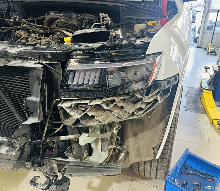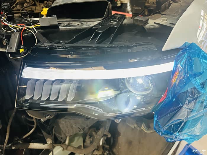 买回来发现换大灯需要拆中网,我不想来回拆车,就等着有机会再说,没想到一等就是两年。这次趁着换水箱机会连同大灯一起换掉,前脸看着终于协调了。
