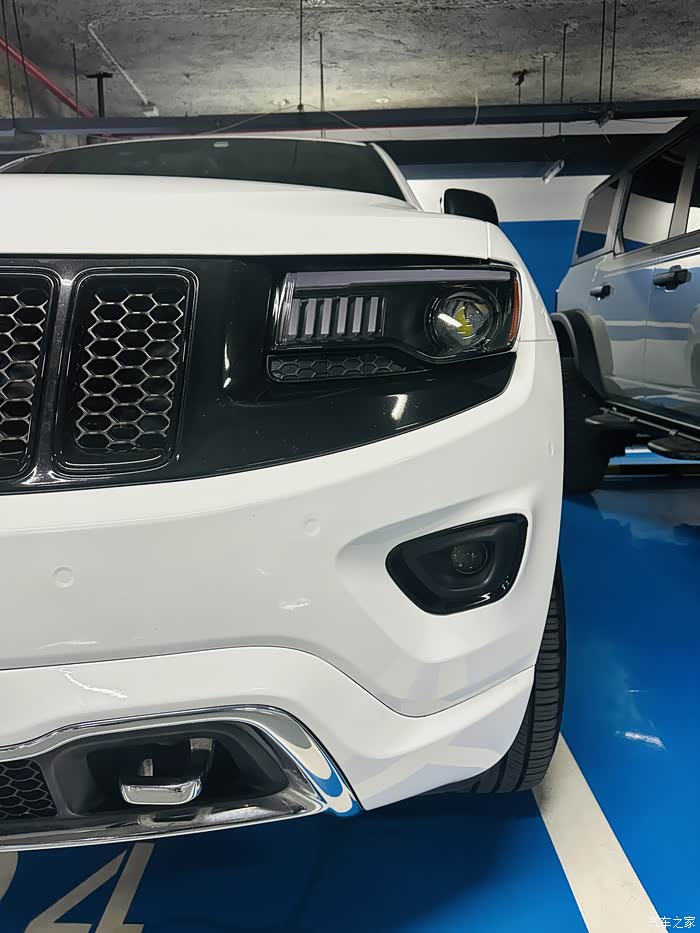 我这车原车是黑色的,后来贴膜改色换成了白色。刚开始是哑光白,被邻居开车门刮掉了一层车衣之后我换了个亮光白色。车衣改色之后,中网弄成全黑色,唯独大灯还是原车的白色。我这是2015款,不像2018款那种熏黑大灯。前几年在某鱼上买了个SRT同款大灯,我看离我不远,就想着自提,被拒绝了,现在想想可能是遇到了骗子。之后我看见某宝买改装熏黑大灯,果断下单购买。