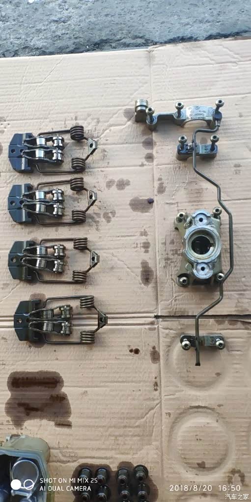 偏心轴弹簧和偏心轴摇臂拆出按顺序摆放。