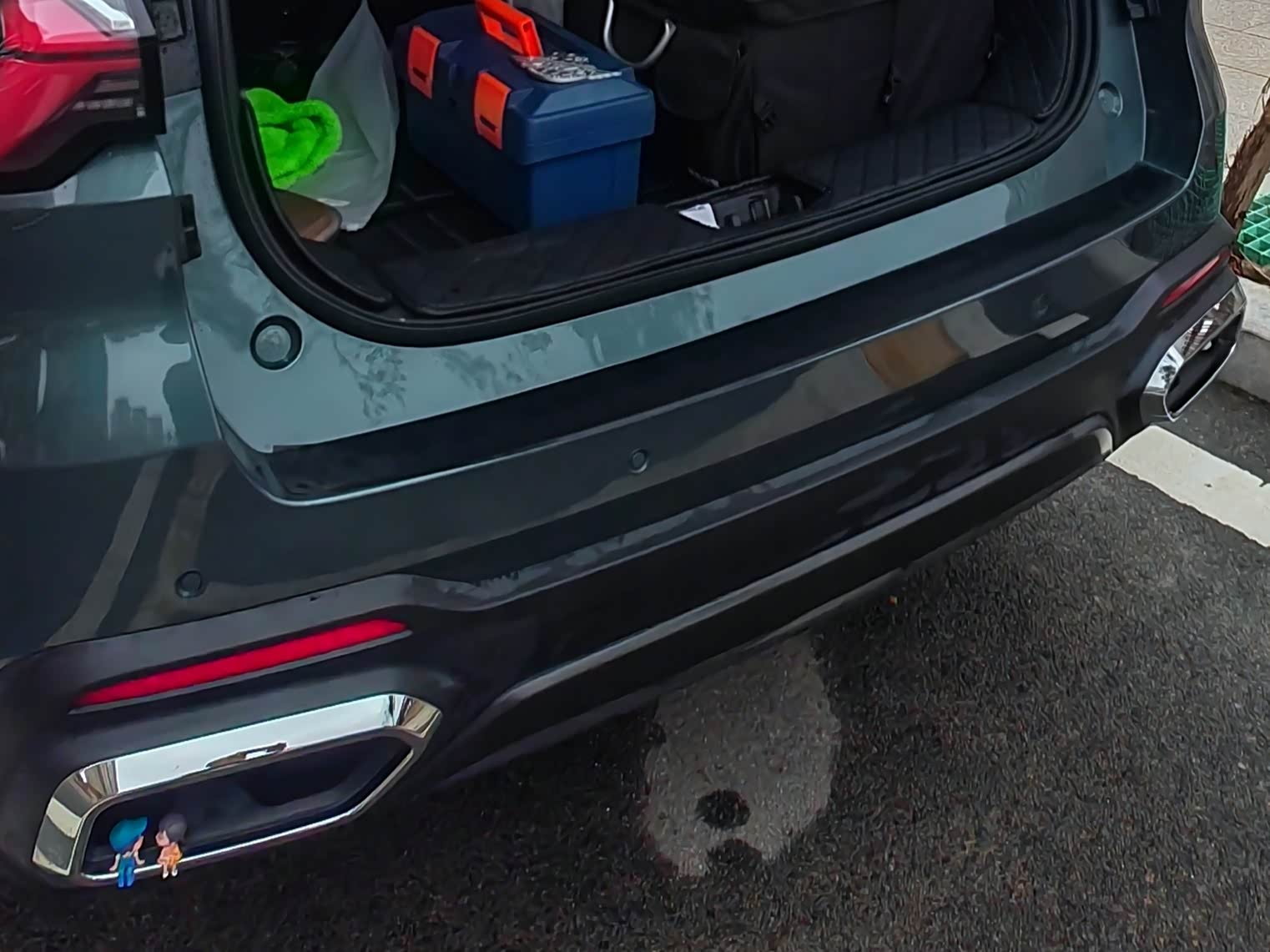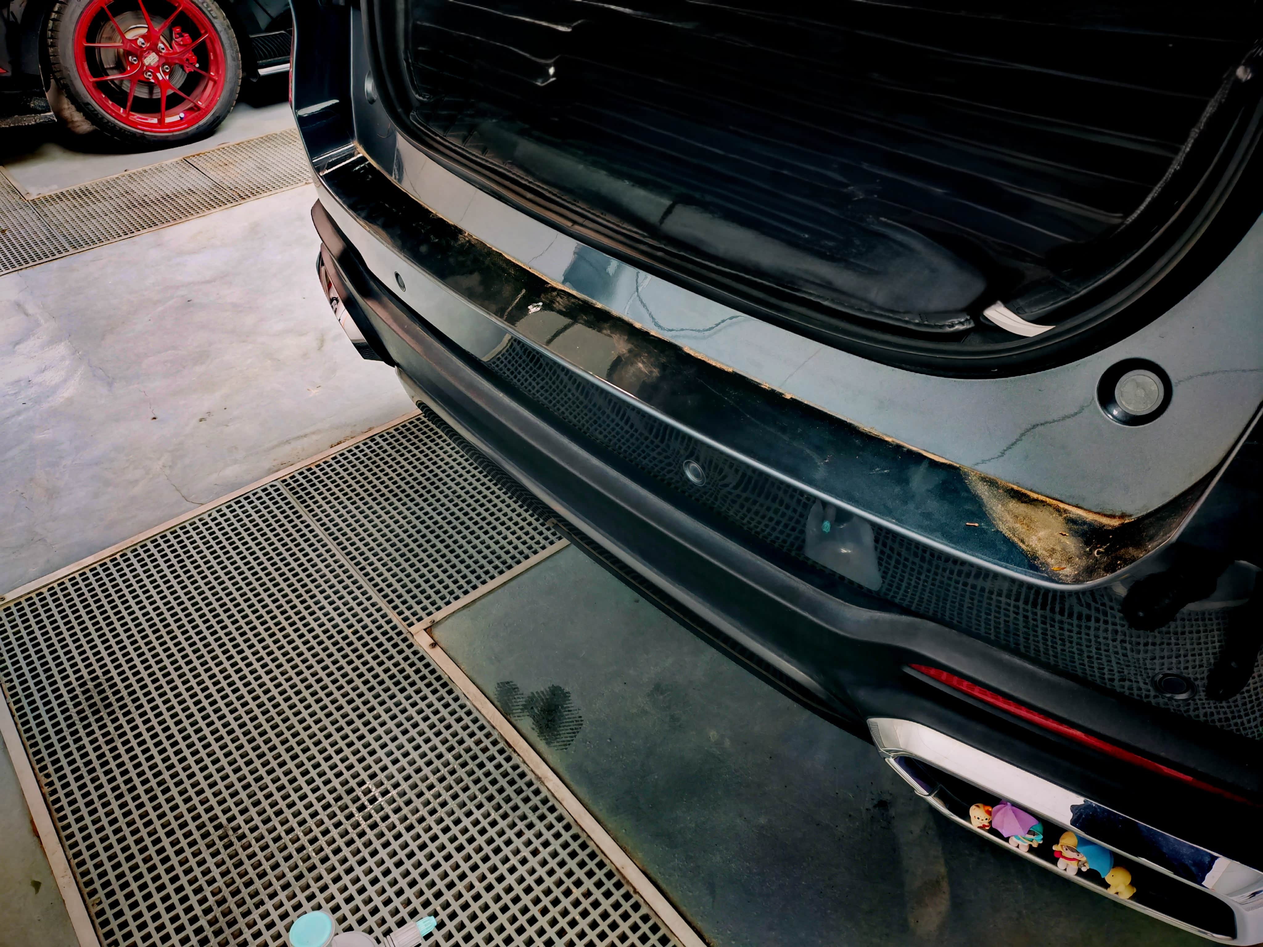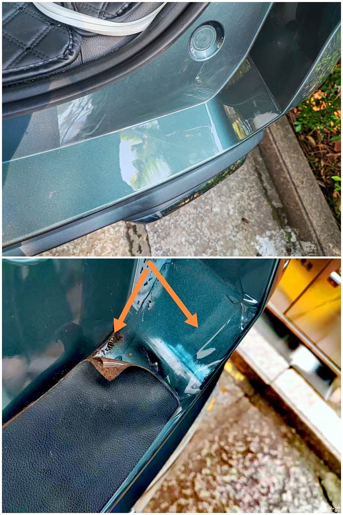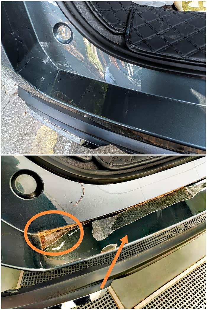 事情要从两年前说起,那时我提车就贴了车衣,车子尾门门槛这里,也是贴了车衣保护,但是当时不知道咋想的,居然又多贴了后门门槛条,因为之前的车子贴的是金属门槛条,那种很难拆除,所以这次选择了皮质材料。