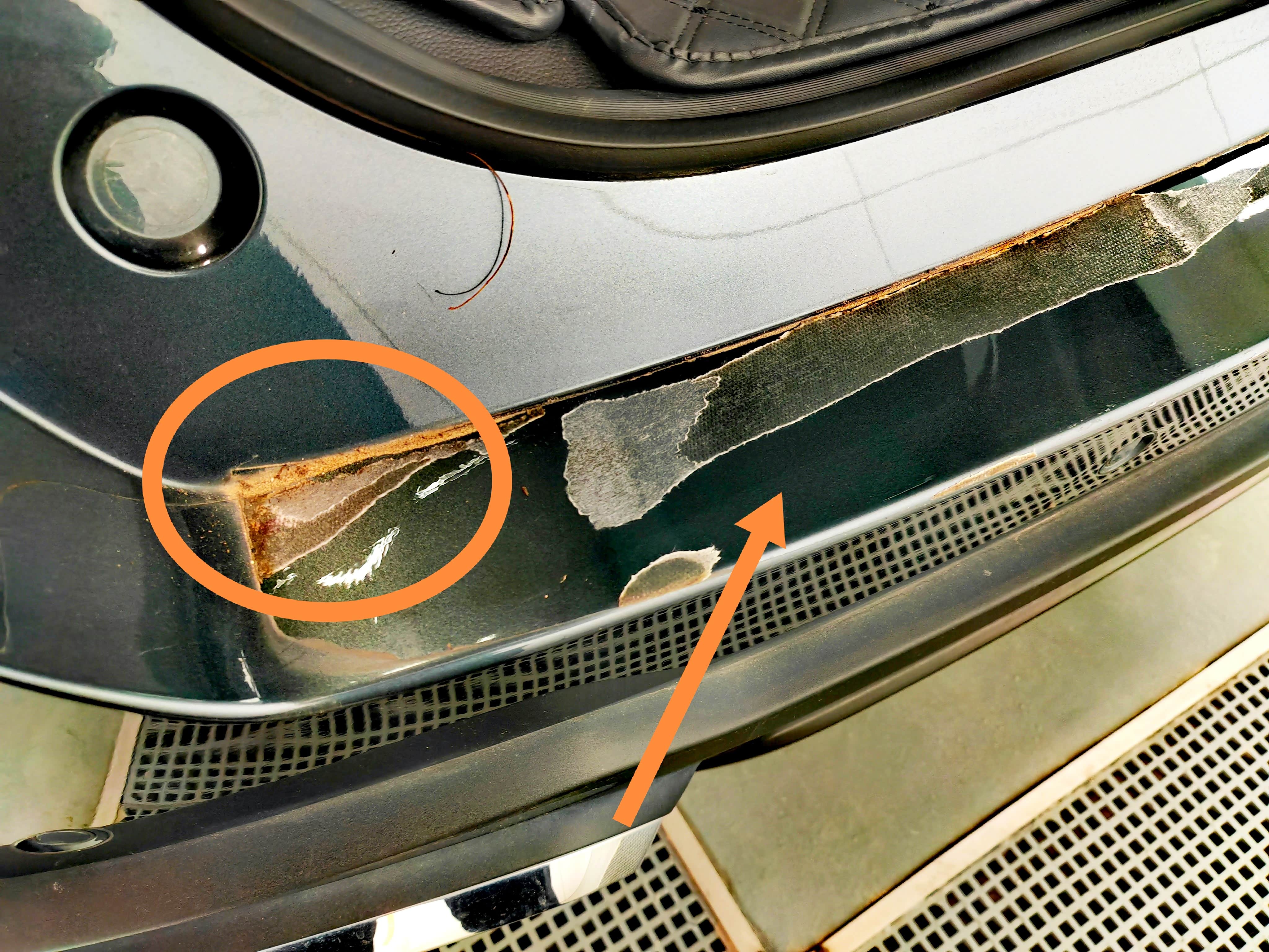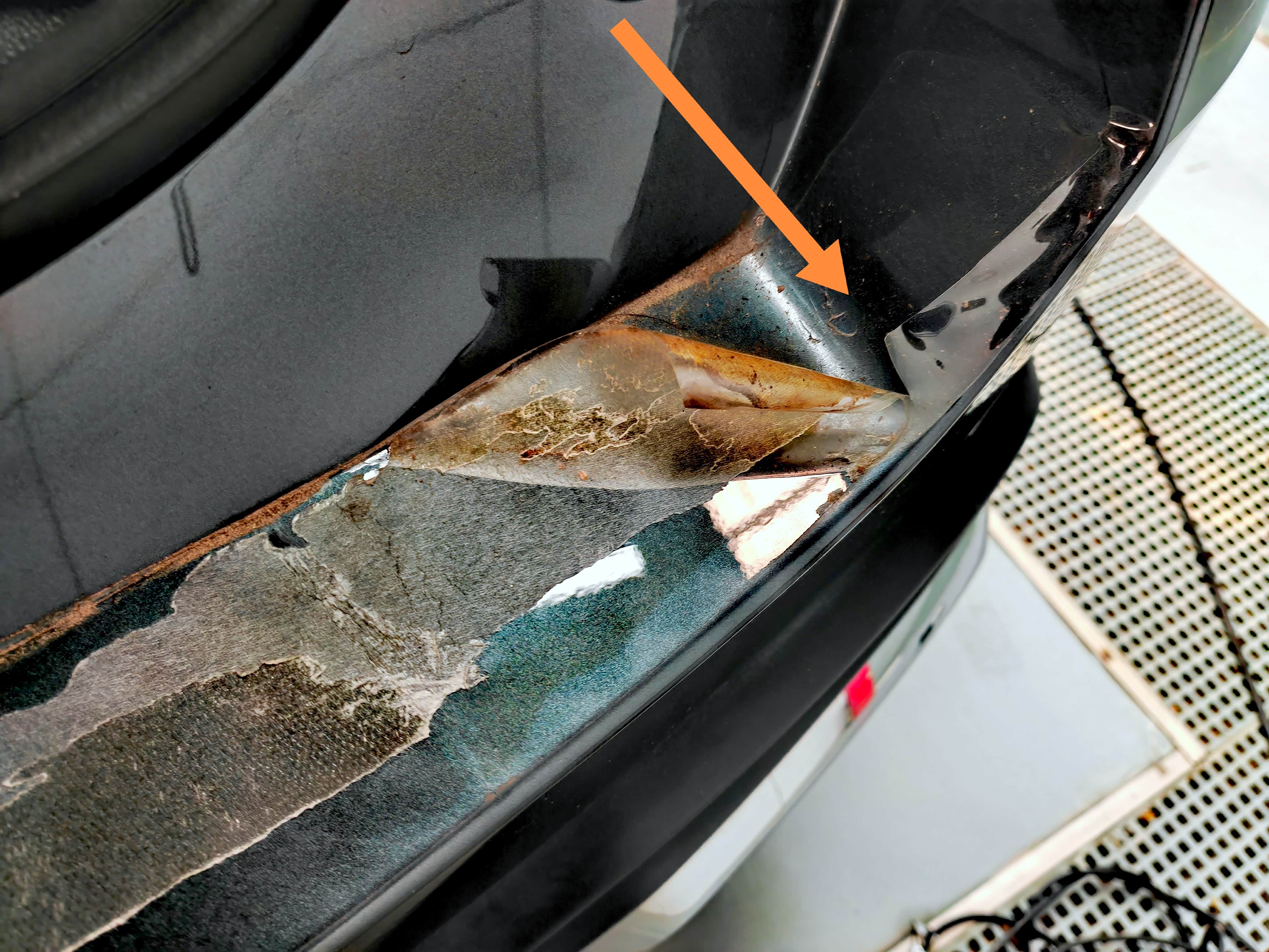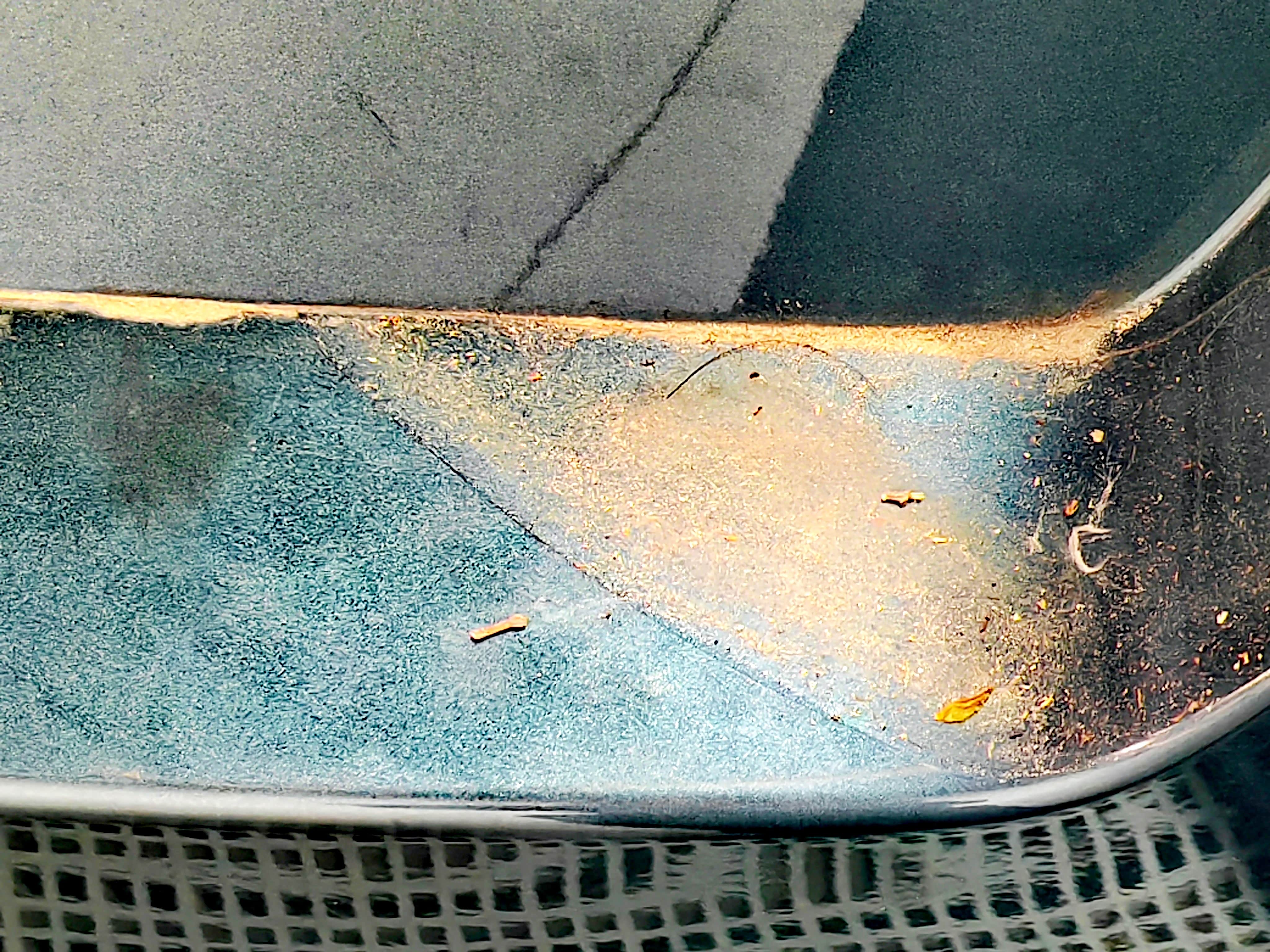另外一边也是这样,明显可以看到车衣已经变色,师傅说,还好我贴了车衣,要不就是直接腐蚀漆面。