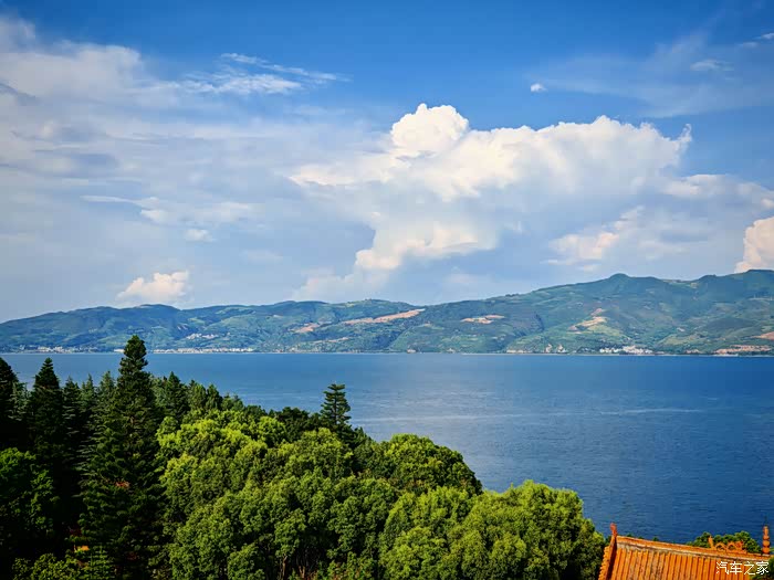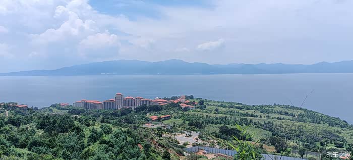 东岸太阳山上俯瞰抚仙湖,远处红顶建筑是希尔顿酒店