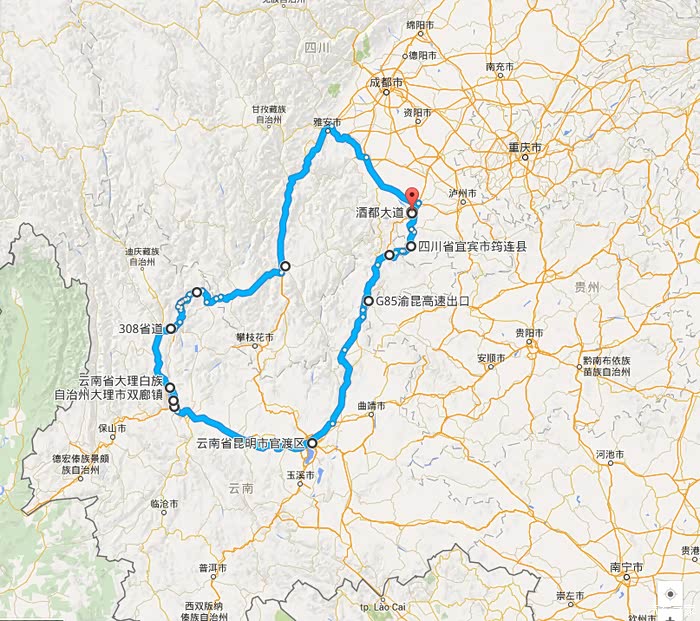 第八天:泸沽湖到西昌到雅安到乐山到宜宾,这是回程的路线 我一个人开了13小时的样子 里程820