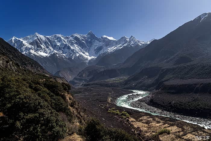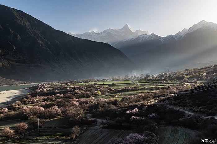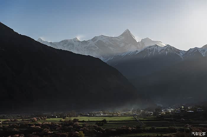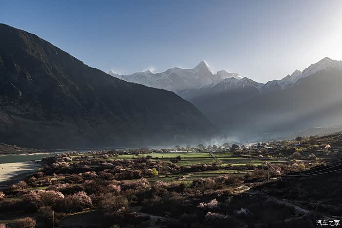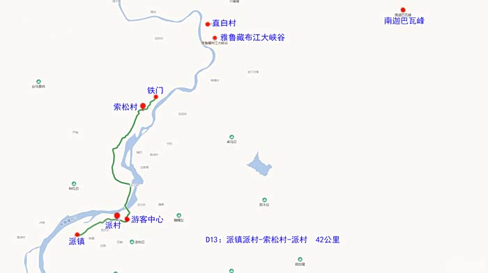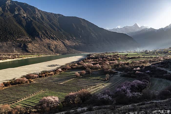 天气真好!今天要进雅鲁藏布江大峡谷景区看看。早晨,先到派镇观景平台拍摄,然后再进景区。根据景区的管理,进景区是要乘坐景区旅游专车,车票90元。因此,也可以说景区没有卖门票。自驾车辆,如果想进入景区也可以:1)需要购买景区车票90元,2)到保安室签个安全保证书,3)不得使用景区车专用道路。这第3点解释一下,景区车专用的道路是在雅鲁藏布江的东岸,通往直白村的道路。而自驾车必须先过个桥,到雅江西岸,可到达索松村。此行,只到达索松村,并最后确定在索松村等待拍摄日照金山。其实,继续前行,前方有桥梁可以到对岸(东岸),是能够到达直白村。但从地图上看,在索松村观南迦巴瓦峰,可以有雅鲁藏布江大峡谷作为前景,因而就不到对岸。下次再去时,可以到直白村看看。其实,住在索松村是一个好选择。