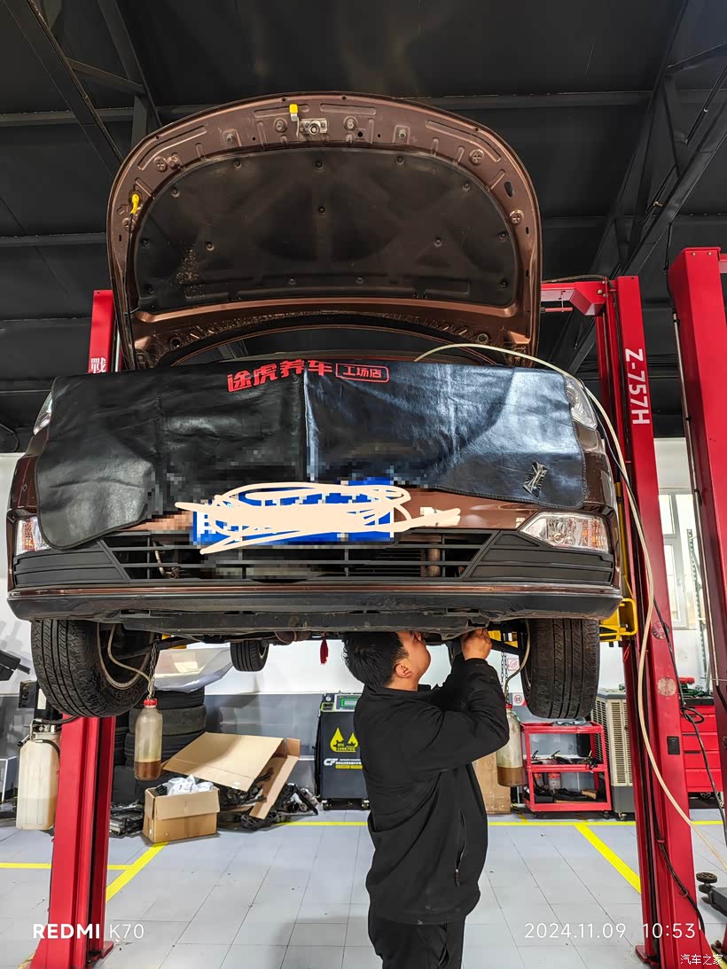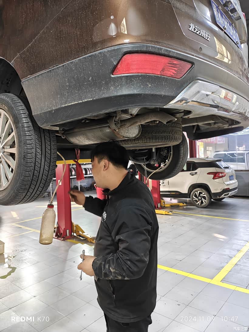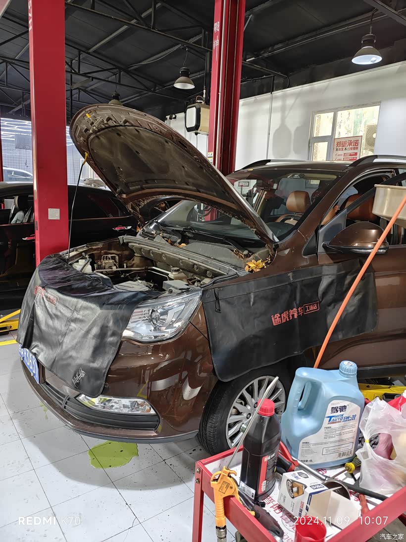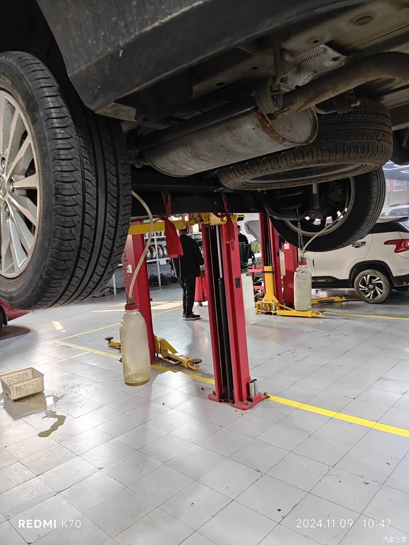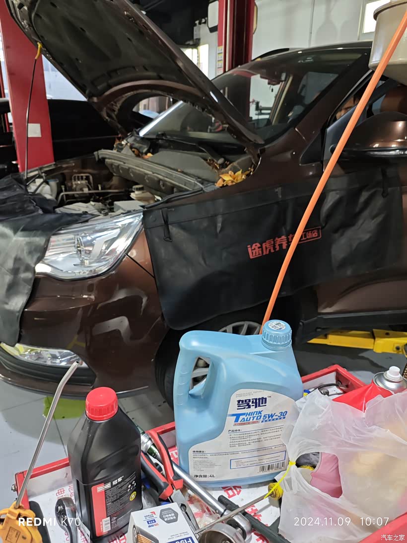 售后保养店关闭后,就在途虎开始保养了,这次除了小保养,还换了刹车油和防冻液,发现机油底壳和避震胶套漏油,不是很严重。留着下次处理吧。