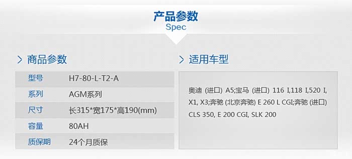 推荐瓦尔塔H7-80-L-T2A(AGM,尺寸315*175*190)【为80AH,容量大,完美安装】