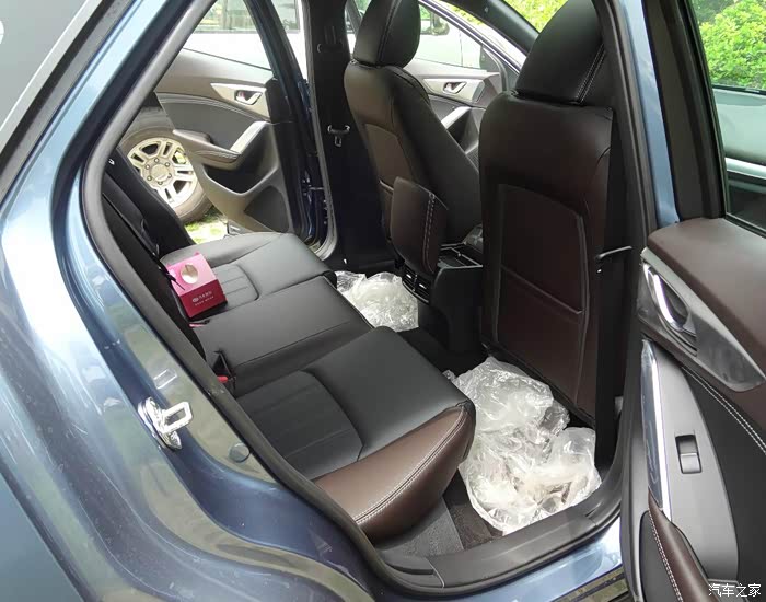 【空间】前排空间挺好,后排两个人够用,后排三个人的话中间那个人就很尴尬了,后排中间的隆起太高,加上扶手箱太靠后,脚实在是不好放。