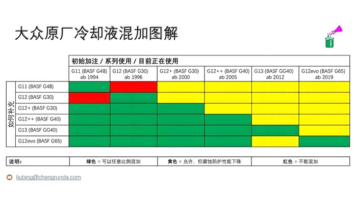 那么问题来了,上汽大众的防冻液奥迪能不能用,G12evo对应巴斯夫固力顺G65,能不能直接添加,网上一堆视频号说啥的都有。。。