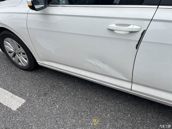 可以看出这次的事故对方车造成了我的车门处剐蹭和凹陷。