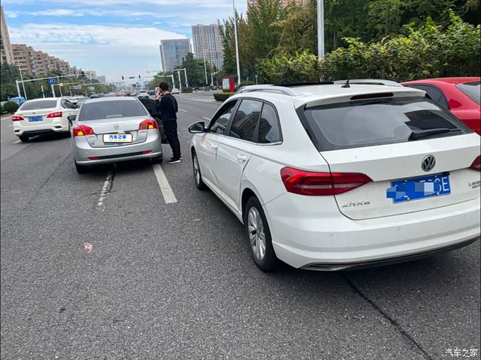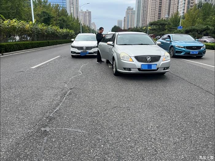 我的车子是大众朗逸,对方车子是一台别克,我的车子在白线内,对方压线。