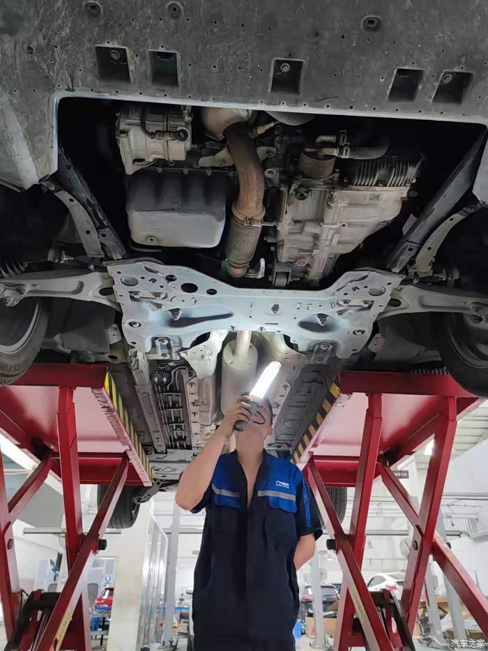 最近一次的保养时候跟师傅一块在车间里看小七的车底