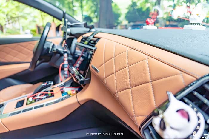 先锋版的内饰是黄黑双色对比,并且内饰采用了大量的菱形纹设计理念,而且大部分都是真皮包裹