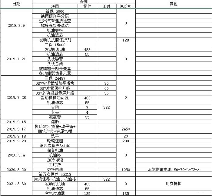 我也分享一下我对小七的一些保养记录和零部件的更换