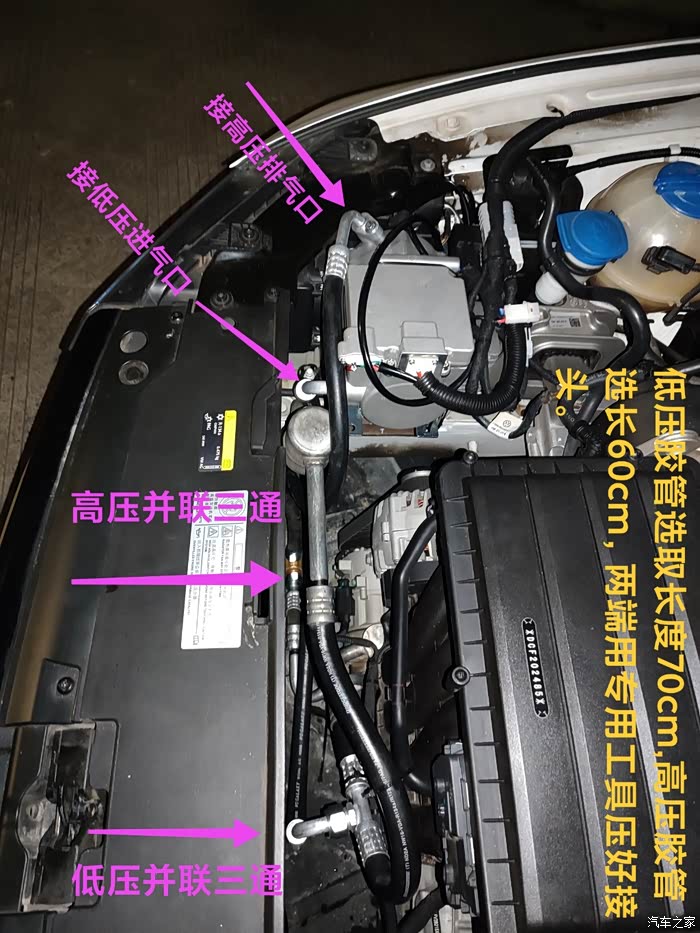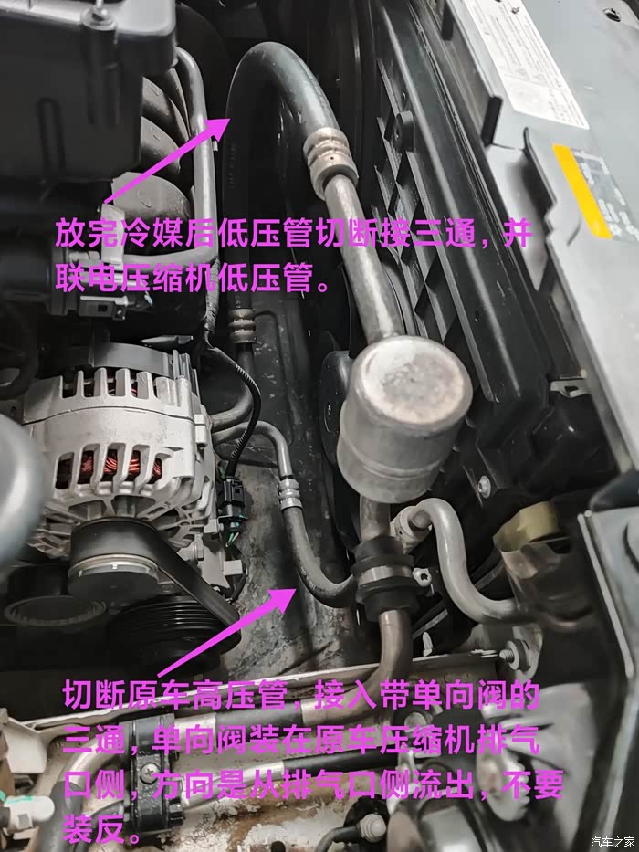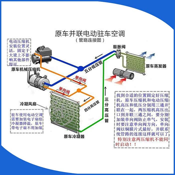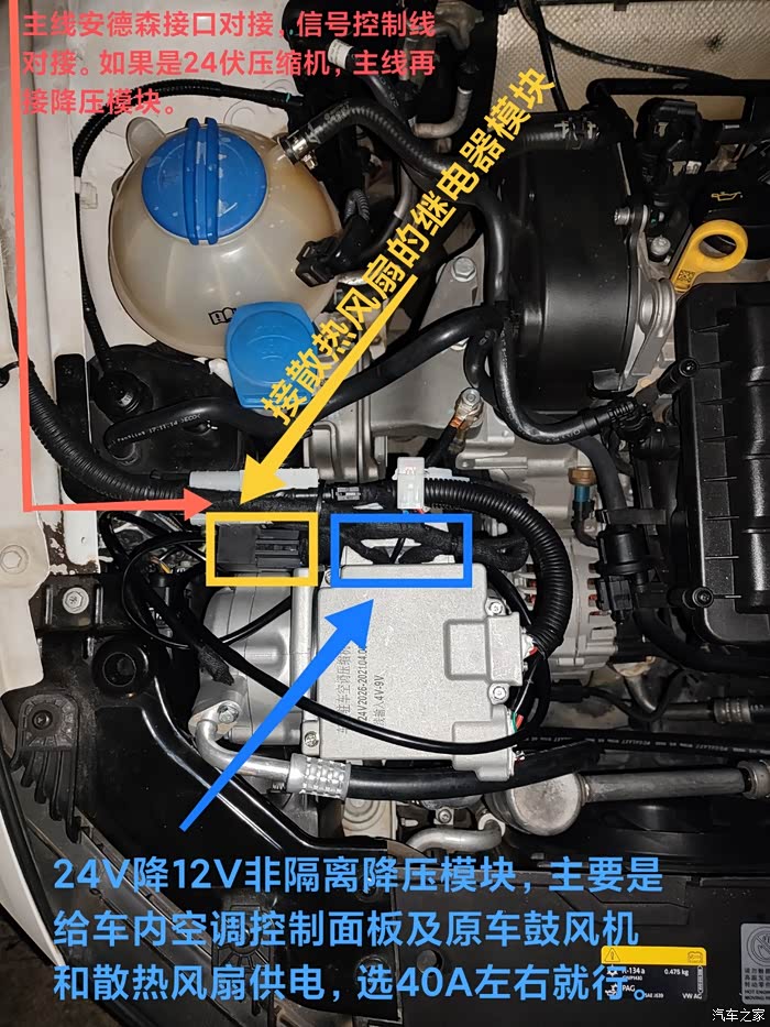 用24∨DC转13.8VDC模块给冷凝风扇供电,外加pwm信号发生器。电压缩机输出24伏带三组继电器分别控制 主副电源切换、PWM信号切换、ACC切换,原车小风扇正极再接出一组前置吹风扇,通过pwm信号发生器来控制所有风扇的转速来提升散热能力,大众电子电子风扇频率50